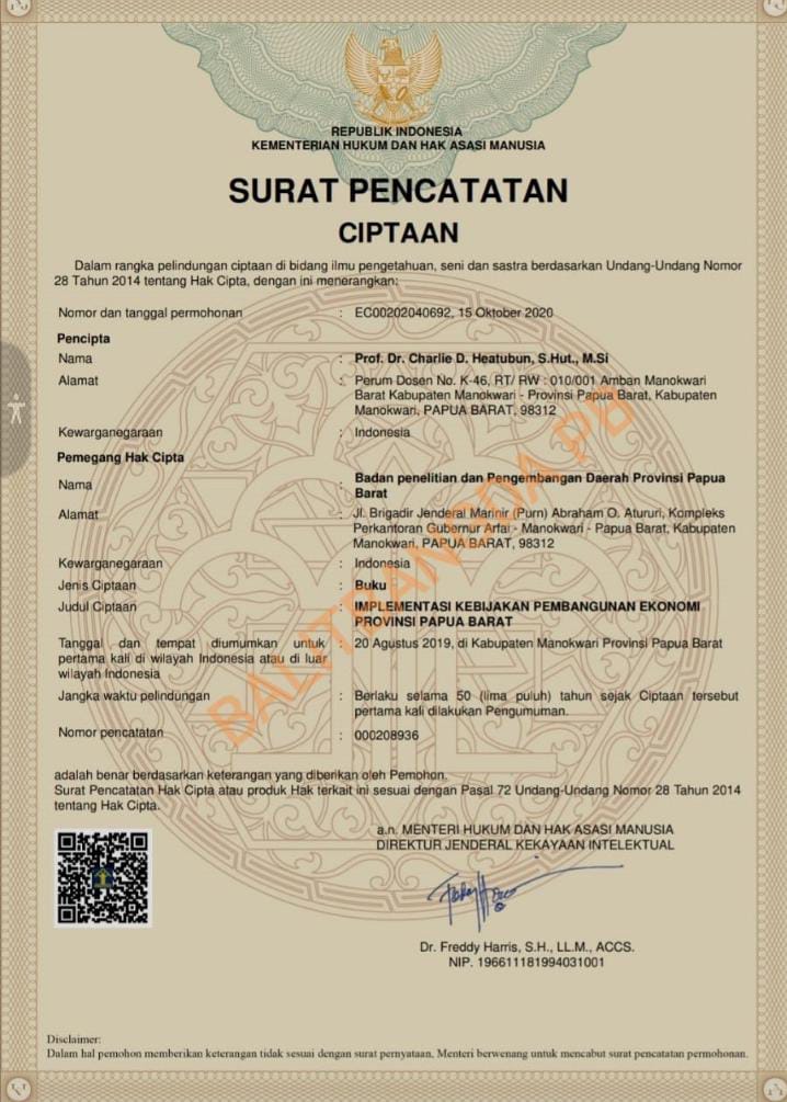 Pencipta : Prof. Dr. Charlie D. Heatubun, S.Hut., M.Si