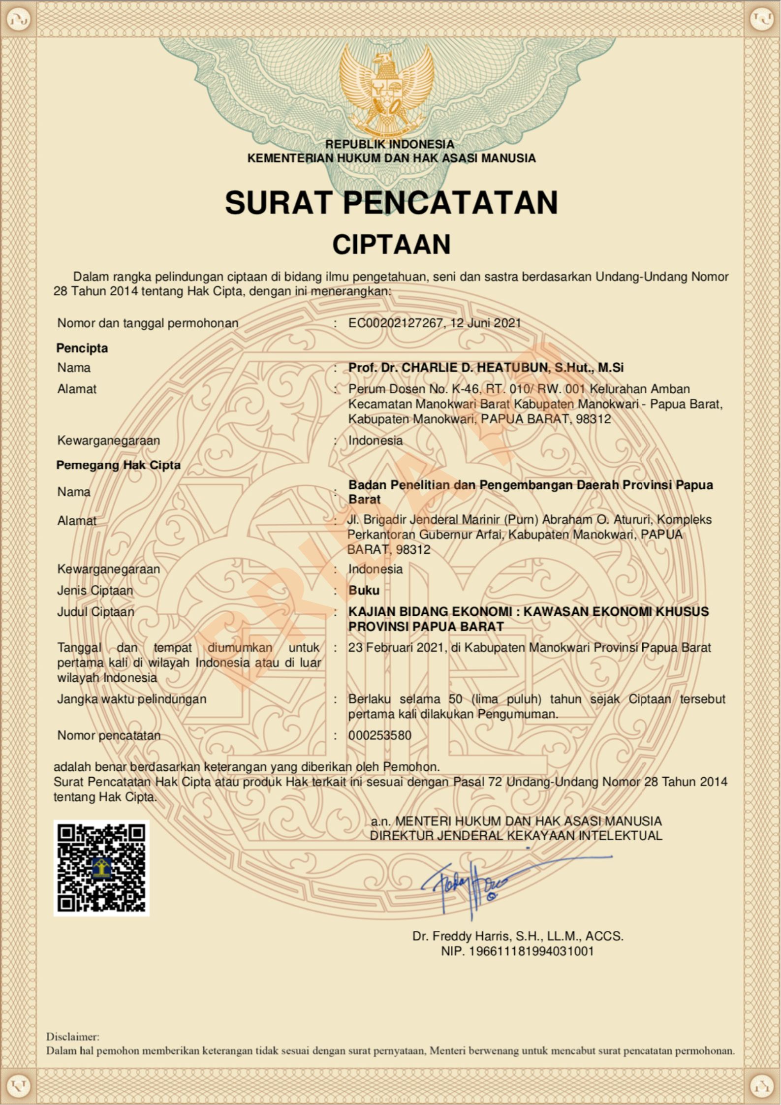 | Pencipta | : | Prof. Dr. Charlie D. Heatubun, S.Hut., M.Si | |